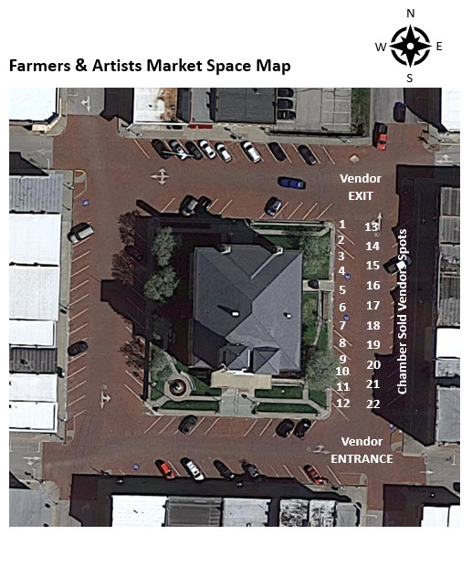 - There will be vendor spaces on the East side of Lexington street that the Chamber of Commerce has sold. The Farmers Market will occupy the West side of Lexington and a long aisle down the middle of that street.
