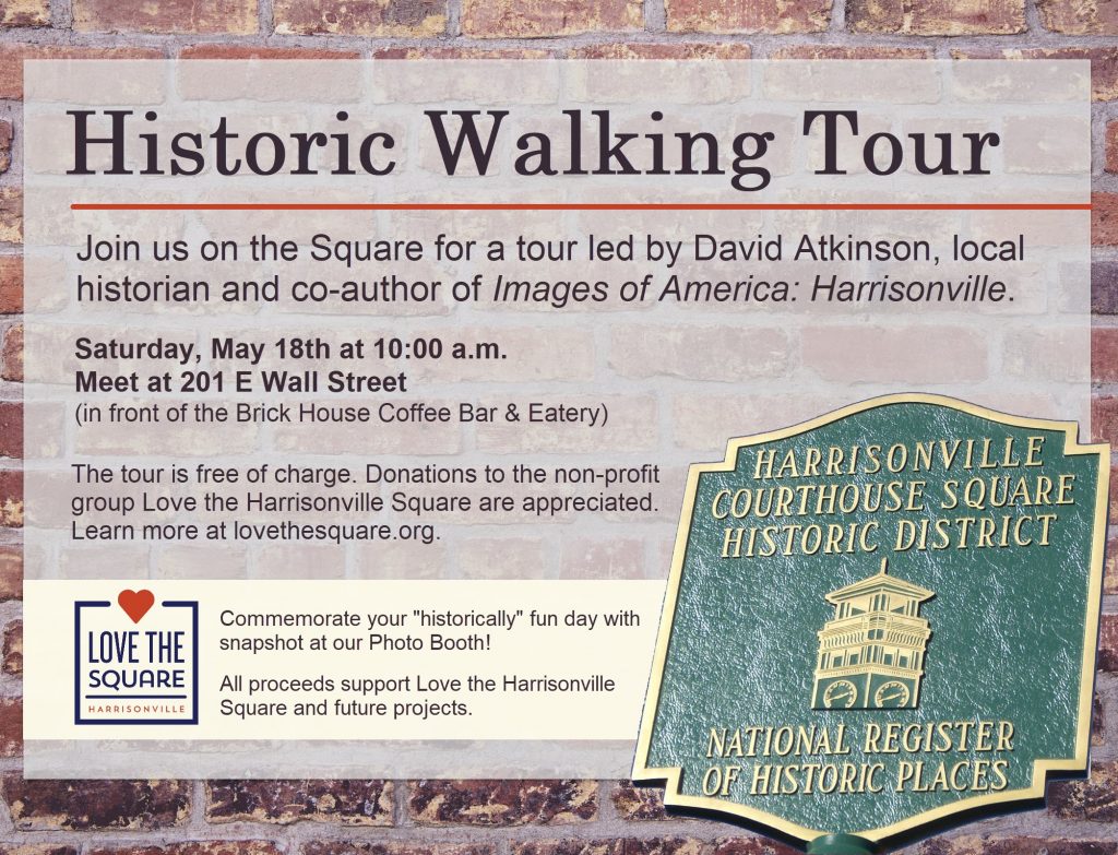 We’re happy to say that the weather looks like it will be clear just long enough for us to proceed with the Historic Waling Tour this morning! Join us on the Square, today, Saturday May 18th for a historic walking tour of the Harrisonville Square! The tour will meet at 10:00 am at 201 E